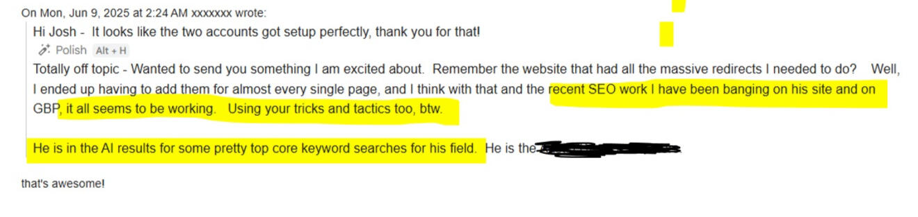 No matter your SEO goal — Getting into Google's AI results (AIO/M), or old school Local visibility / Map Rankings, Ecom, rank your DIY business, GEO, other search engines like YouTube — We Teach It All!